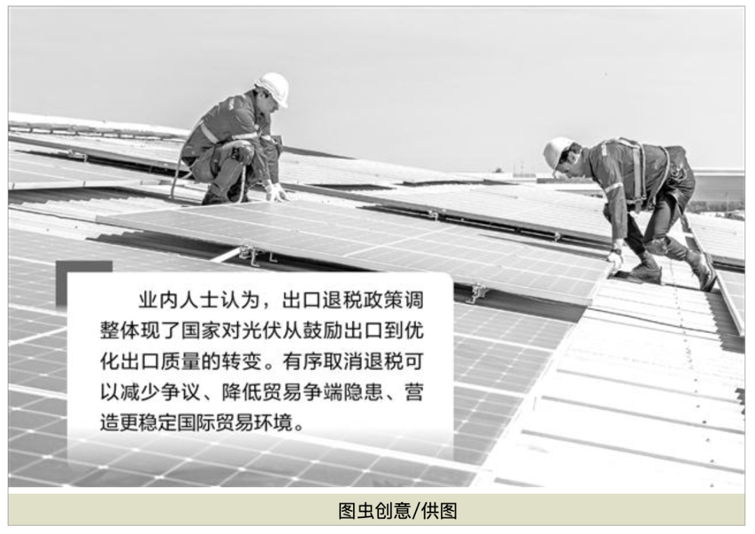 我国自2013年起对光伏产业实施出口退税政策,在产业培育阶段有效帮助企业降低成本、提升国际竞争力。据了解,光伏产业出口退税政策分步退出始于2024年底,国家将退税率从13%下调至9%,本次取消退税,行业已有预期。