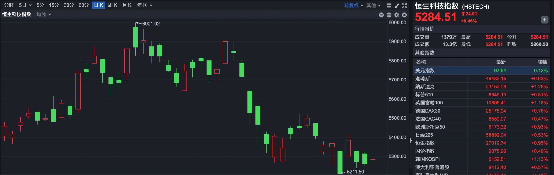 恒生科技指数开盘报5284.51点,上涨24.01点,涨幅0.46%。