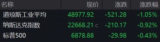 银行股下挫,高盛跌逾7%,摩根士丹利跌超6%,富国银行、花旗集团跌超5%,美国银行跌超4%。
