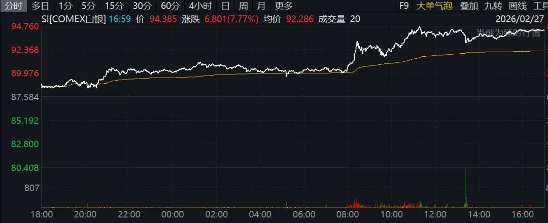 2月27日国际金银双双大涨,现货黄金收涨1.75%,COMEX黄金期货涨1.64%。现货白银涨6.33%,COMEX白银期货涨7.67%。