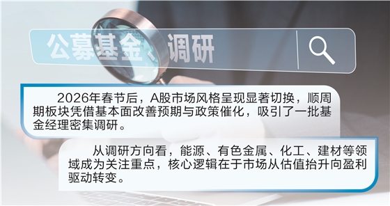 2026年春节后,A股市场风格呈现显著切换,顺周期板块凭借基本面改善预期与政策催化,吸引多位基金经理密集调研。