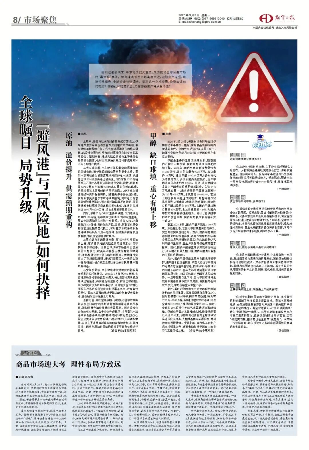 对于局势后期发展,分析师普遍认为风险仍将持续。总体来看,伊朗局势持续升级将继续搅动大宗商品市场,其中能源、航运品种受冲击最为直接,化工品走势呈现分化,贵金属则持续受益于避险情绪。对于投资者而言,需密切关注地缘局势进展,严控风险,灵活调整操作策略,以应对市场的不确定性。(记者 吕双梅)