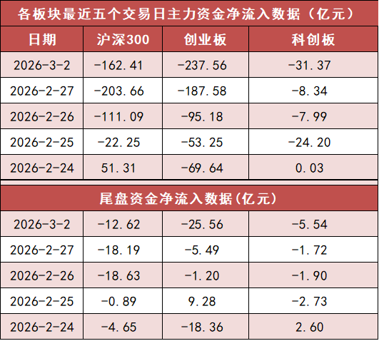 沪深300今日主力资金净流出162.41亿元,创业板净流出237.56亿元。