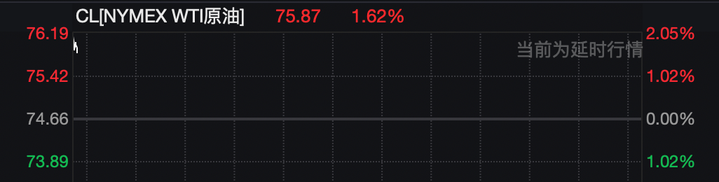 截至发稿,现货黄金报5154.057美元/盎司,涨幅为0.65%;现货白银报83.627美元/盎司,涨幅为0.19%;WTI原油报75.87美元/桶,涨幅为1.62%。