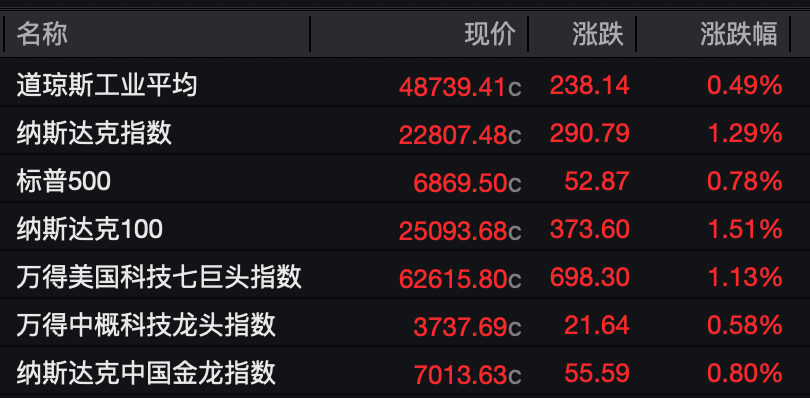 昨夜,美股三大指数集体收涨。大型科技股多数上涨,英特尔涨超5%,亚马逊、特斯拉涨超3%,Meta、英伟达涨逾1%;苹果、谷歌小幅下跌。