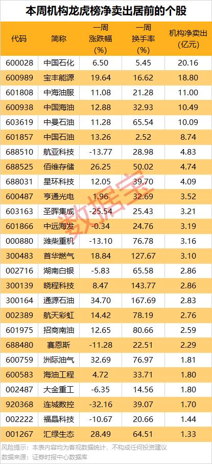 此外,中海油服、中国海油、中曼石油、中国石油等油气股机构净卖出金额居前。