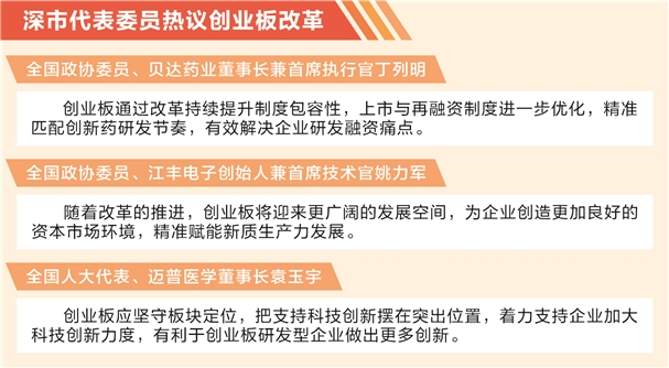 作为服务成长型创新创业企业的核心资本市场平台,创业板自设立以来,尤其是实施注册制改革后,制度包容性持续提升,已成为生物医药、新能源、高端制造等战略性新兴产业发展的“沃土”。此次提出增设上市标准,让深耕各领域的深市代表委员倍感振奋。他们普遍认为,这一举措精准契合创新型企业成长规律,将有效破解更多新业态、新模式企业的融资难题。