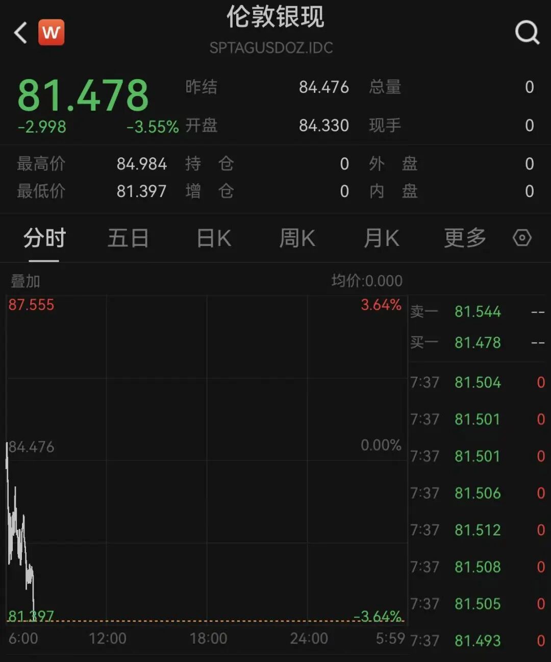 今日开盘,现货黄金与白银直线大跌,国际原油开盘大幅拉升。