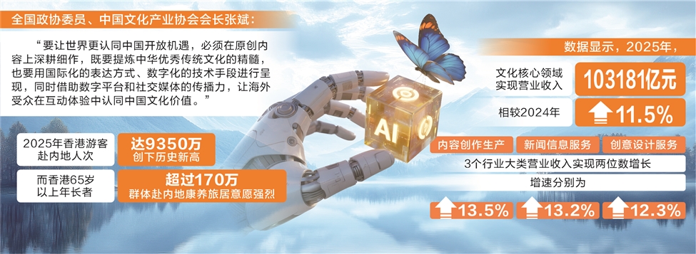 当下,我国文化出海方兴未艾,而AI技术的深度赋能,更为文化产业打开了全新的发展空间。2026年全国两会,多位代表委员围绕繁荣文化事业,提升文化“软实力”提出建议,为文化产业高质量发展建言献策。