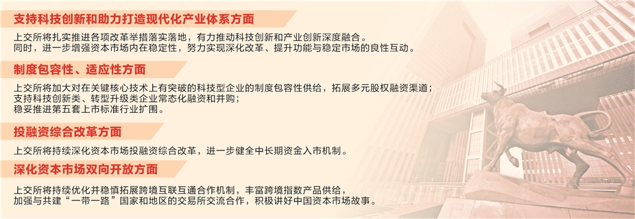 深化资本市场双向开放方面,上交所将以提升跨境投融资便利度为方向,进一步营造更加透明、稳定、可预期的市场环境。持续优化并稳慎拓展跨境互联互通合作机制,丰富跨境指数产品供给,有效提高国际投资者服务精准度,加强与共建“一带一路”国家和地区的交易所交流合作,积极讲好中国资本市场故事。