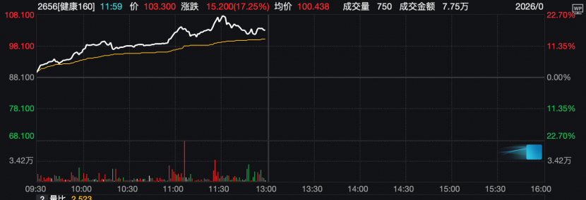 港股通标的股中,健康160大涨,盘中涨幅超过20%。
