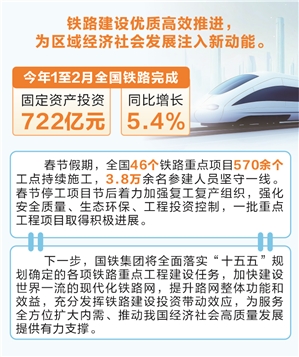 时报数说 全国铁路前两月完成 固定资产投资722亿元