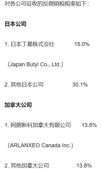 人民财讯3月13日电,商务部公告,根据《反倾销条例》第三十八条的规定,商务部向国务院关税税则委员会提出征收反倾销税的建议,国务院关税税则委员会根据商务部的建议作出决定,自2026年3月14日起,对原产于日本和加拿大的进口卤化丁基橡胶征收反倾销税。