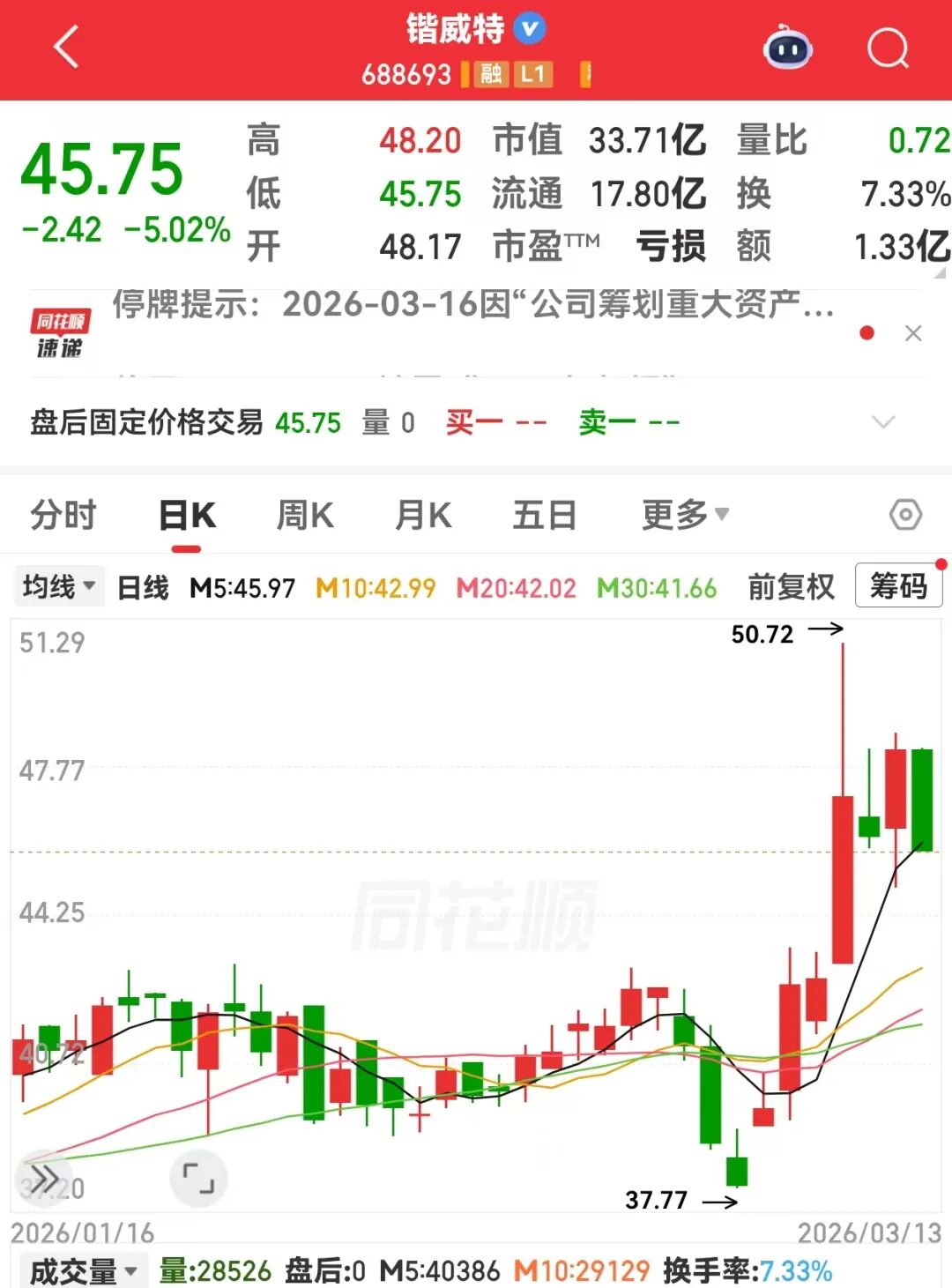 3月13日晚间,锴威特(688693.SH)公告,公司正在筹划以发行股份及支付现金的方式购买晶艺半导体控制权并募集配套资金,交易对方包括易坤、成都晶格共智企业管理中心(有限合伙)等,可能构成重大资产重组。公司股票自2026年3月16日起停牌,预计停牌时间不超过10个交易日。