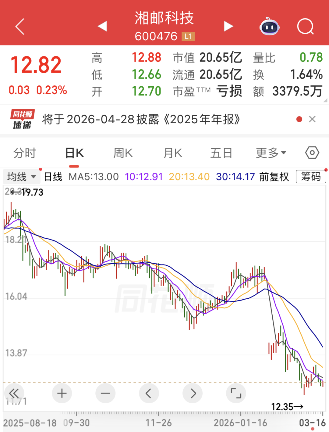 公开信息显示,湘邮科技从属中国邮政集团有限公司,主营软件及大数据研发、平台运营、系统集成、产品销售等业务。截至3月16日收盘,湘邮科技报12.82元/股,市值近21亿元。
