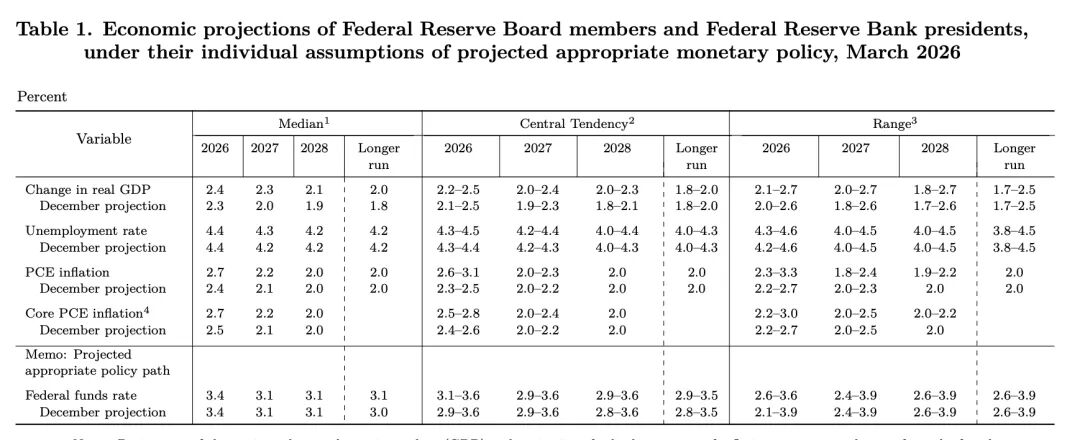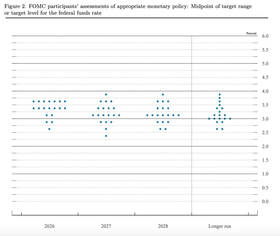 美联储声明新增了“中东局势发展对经济的影响尚不明朗”的表述。点阵图显示,2026年将累计降息25个基点。