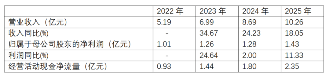 近年来,隆源股份的财务表现勾勒出一条稳健向上的增长曲线。2022年至2025年,公司营业收入自5.19亿元增长至10.26亿元,年复合增长率高达25.50%;净利润连续4年突破亿元大关,2025年全年净利润水平达到1.43亿元创下新高,年复合增长率为12.29%。
