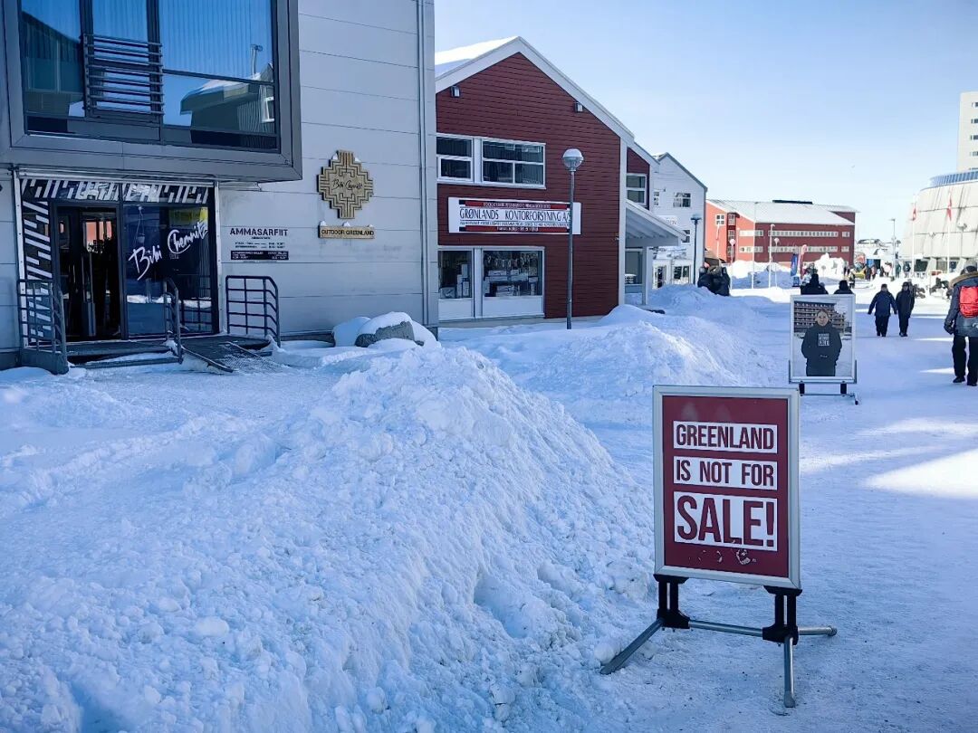 在格陵兰岛首府努克,街道上是安静往来的行人和川流不息的车辆,海港有捕鱼归来的小船和盘旋空中的海鸟。在市中心商业街,一家商店门口摆放着印有“格陵兰岛不出售”的帽衫海报。店员说:“这个系列的衣服和布包很受欢迎,经常销售一空。”
