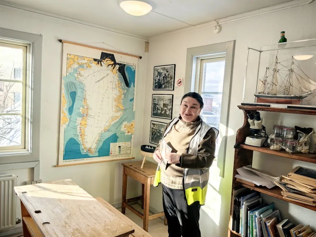 格陵兰岛西西缪特博物馆馆长奥尔森向记者介绍情况。郭梓云摄