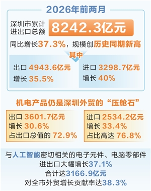 (原标题:时报数说 深圳前两月外贸进出口突破8242亿元 创历史同期新高 )