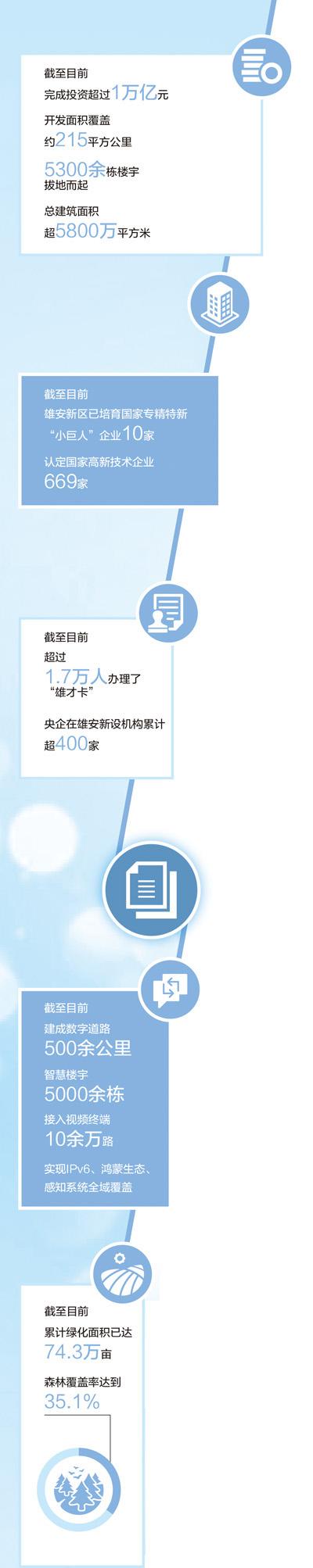 从一块地到一张图,再到一座城,承载“千年大计”的未来之城阔步向前。截至目前,雄安新区累计完成投资超万亿元,总开发面积近215平方公里,5300余栋楼宇拔地而起。