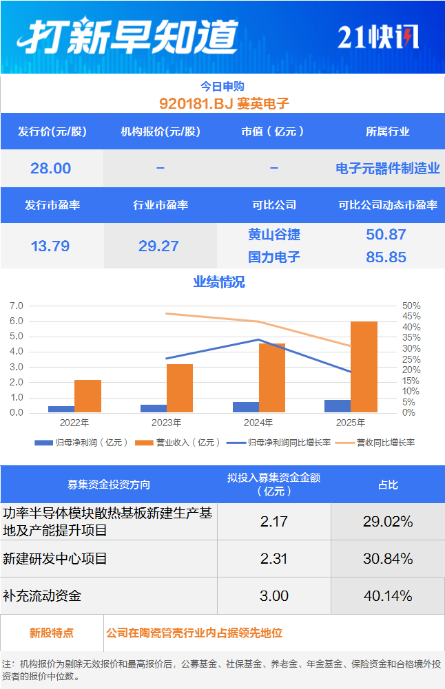 3月30日,可申购科创板的有研复材(688811.SH)与北交所的赛英电子(920181.BJ),另有一只新股上市,为北交所的悦龙科技(920188.BJ)。