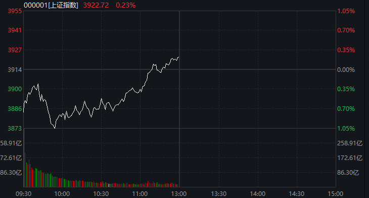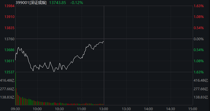 A股市场今天上午整体低开,后跌幅收窄。截至上午收盘,上证指数翻红,上涨0.23%,深证成指跌幅收窄至0.12%。