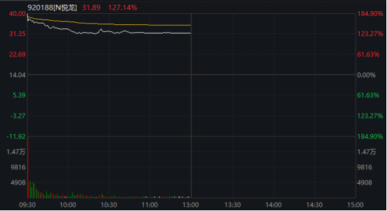 新股悦龙科技盘中涨幅超过180%