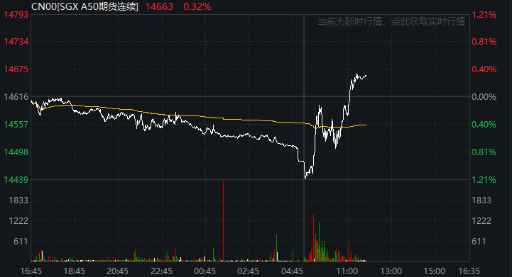 此外,富时中国A50指数期货盘中直线拉升转涨,目前涨0.32%,此前一度跌超1%。