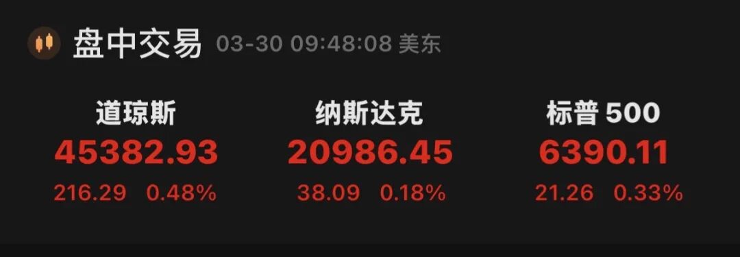 当地时间周一,美股高开。截至发稿,道琼斯指数涨0.48%,标普500指数涨0.33%,纳斯达克综合指数涨0.18%。