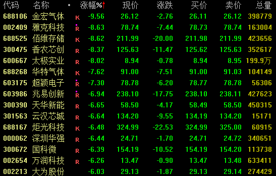 存储概念盘中大幅下挫,截至收盘,佰维存储、香农芯创跌超8%,兆易创新跌约7%,炬光科技、普冉股份、北京君正等跌超5%。