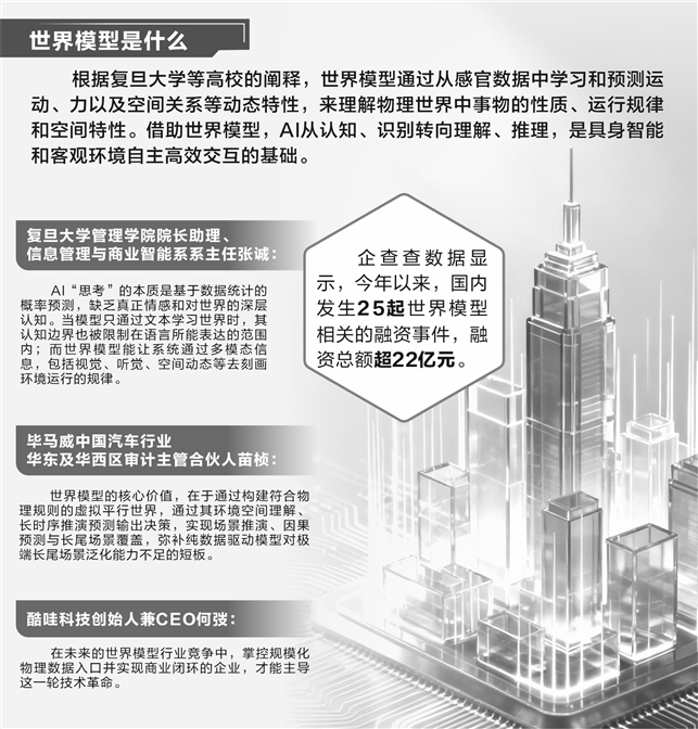 复旦大学管理学院院长助理、信息管理与商业智能系系主任张诚在接受证券时报记者采访时表示,AI“思考”的本质是基于数据统计的概率预测,缺乏真正情感和对世界的深层认知。问题的根源在于模型主要建立在语言数据之上,当模型只通过文本学习世界时,其认知边界也被限制在语言所能表达的范围内;而世界模型能让系统通过多模态信息,包括视觉、听觉、空间动态等去刻画环境运行的规律。