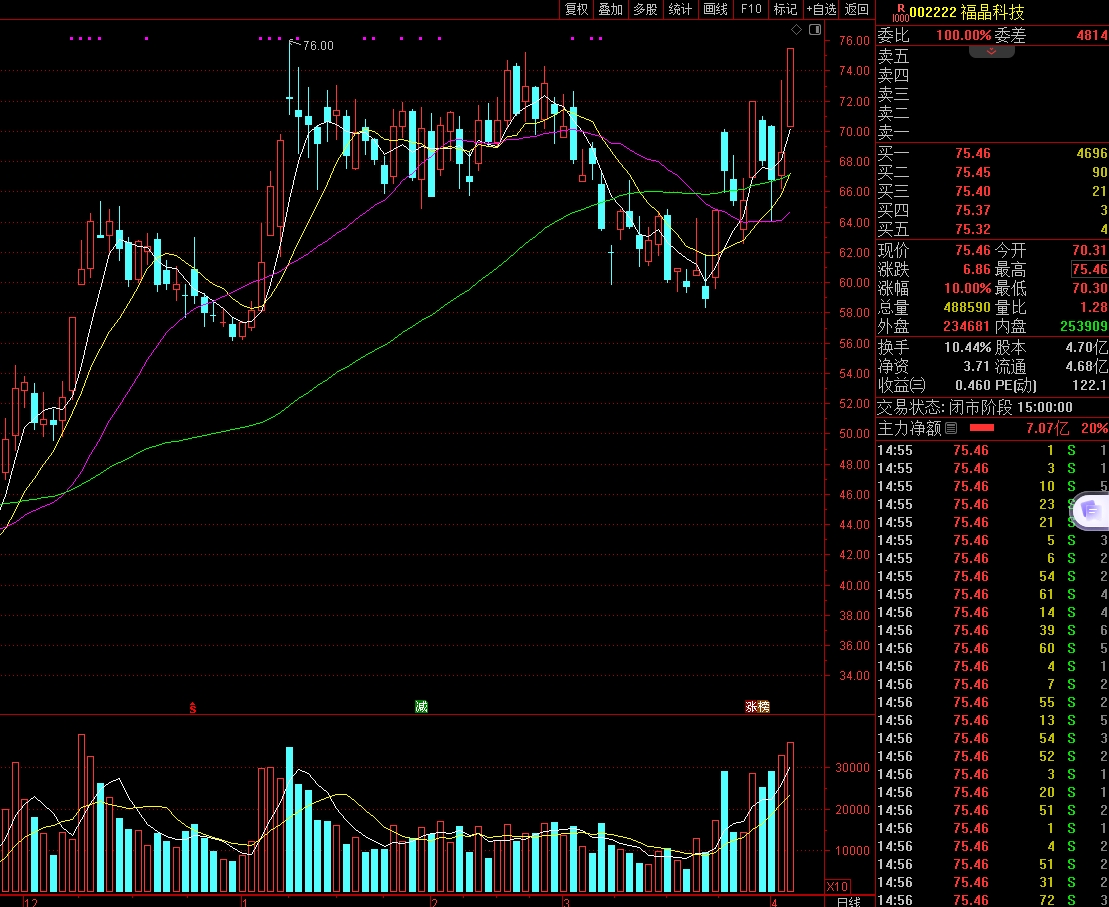 人民财讯4月3日电,4月3日,清明节前最后一个交易日,市场走弱,活跃游资买入的个股不多。福晶科技今日涨停,全天成交金额36.1亿元,国泰海通证券武汉紫阳东路证券营业部买入1.95亿元,卖出56万元。中超控股昨天盘中一度涨停,收盘涨6.12%,今天收盘触及跌停,国泰海通证券武汉紫阳东路证券营业部今天卖出中超控股1.83亿元,该营业部今天还卖出中利集团1.09亿元,中利集团昨天涨停,今日涨1%。
