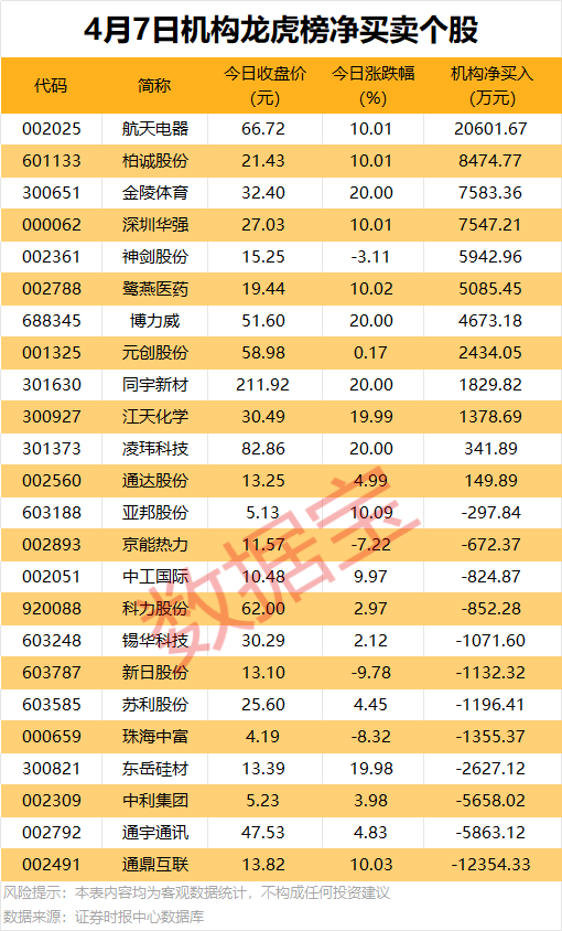 龙虎榜揭秘:机构净买入10股超1000万元