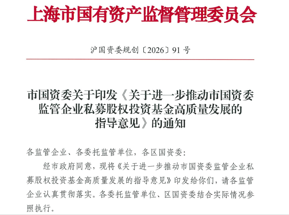 4月7日,上海市国资委正式印发《关于进一步推动市国资委监管企业私募股权投资基金高质量发展的指导意见》(以下简称《指导意见》),从强导向、提能力、优机制三方面形成16条工作举措,推动国有资本成为服务产业发展的长期资本、耐心资本、战略资本。