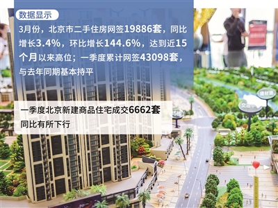 链家数据显示,3月份,北京市二手住房网签19886套,同比增长3.4%,环比增长144.6%,达到近15个月以来高位;一季度累计网签43098套,与去年同期基本持平。根据三方协议签约数据,3月份主要经纪机构二手住房三方协议签约量同比增长8.7%,单月实际签约量达到近17个月以来最高水平;一季度主要经纪机构二手住房三方协议签约量同比增长7.7%。
