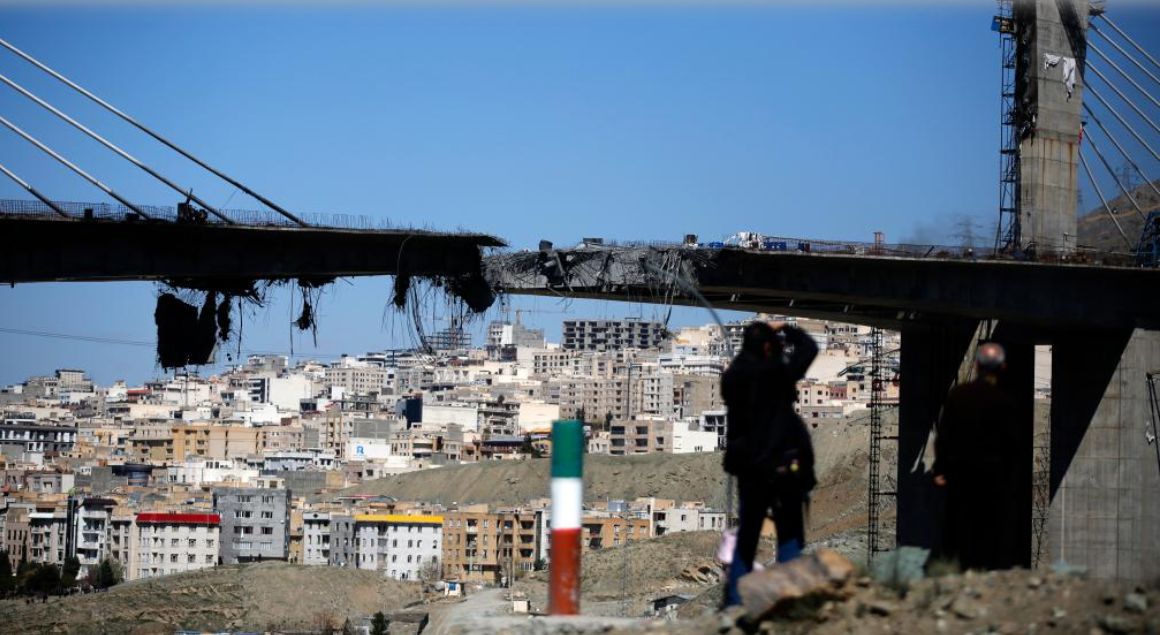 伊朗卡拉季市贝伊克公路桥遭空袭受损状况 图片来源:新华社