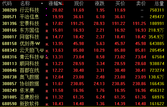 算力概念盘中强势拉升,截至收盘,行云科技、平治信息20%涨停;宏景科技涨近18%,盘中逼近涨停创历史新高;优刻得、云天励飞、青云科技等涨超10%。