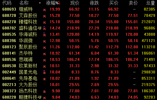 半导体板块强势拉升,截至收盘,锴威特20%涨停,艾森股份、臻镭科技涨超15%,盛科通信、华海诚科、华润微等涨超10%。