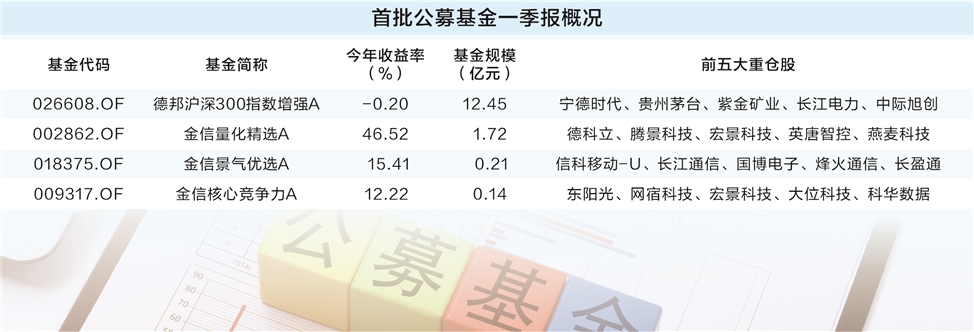 量化基金方面,德邦沪深300指数增强和金信量化精选灵活配置发布了一季报。