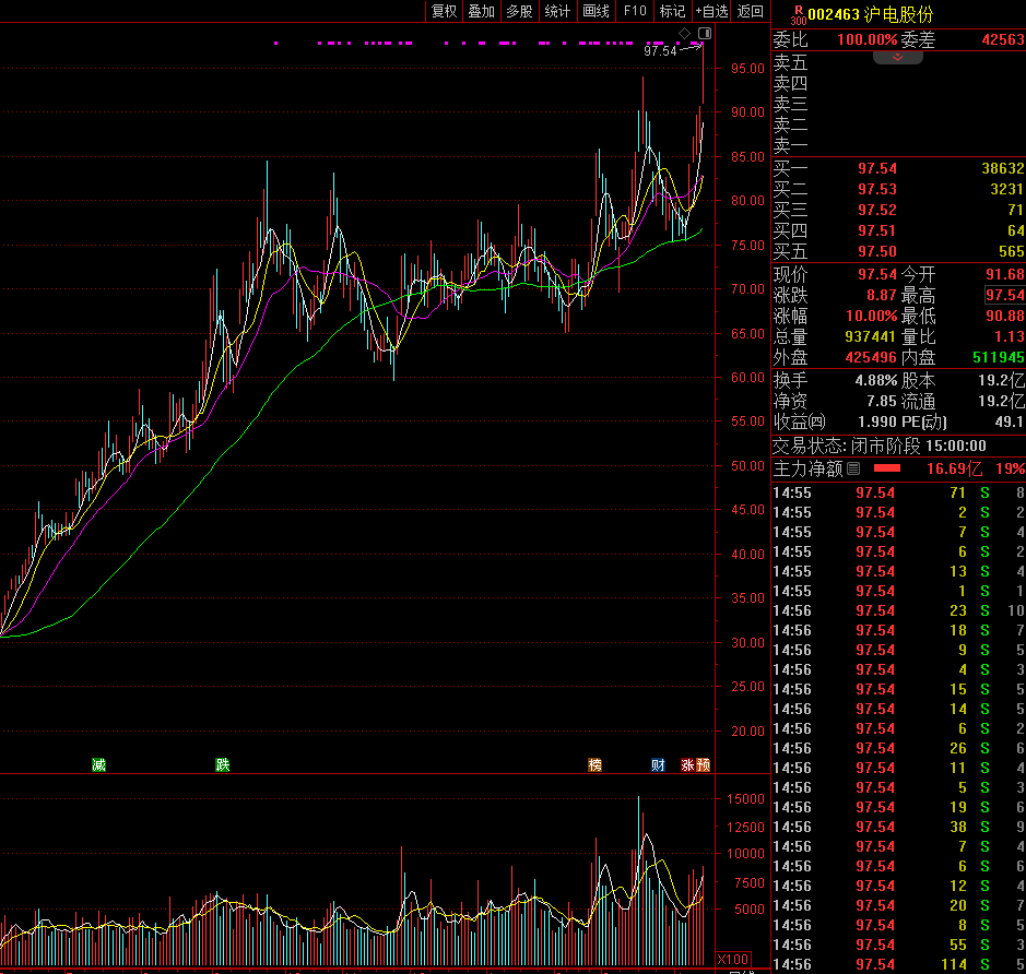 人民财讯4月14日电,4月14日,沪电股份(002463)涨停,股价创历史新高,全天成交金额90亿元。盘后数据显示,两家活跃游资买入。国泰海通证券武汉紫阳东路证券营业买入1.97亿元,卖出118万元。国泰海通北京知春路证券营业部买入1.67亿元,卖出1616万元。另外,买卖方面均有机构出现。