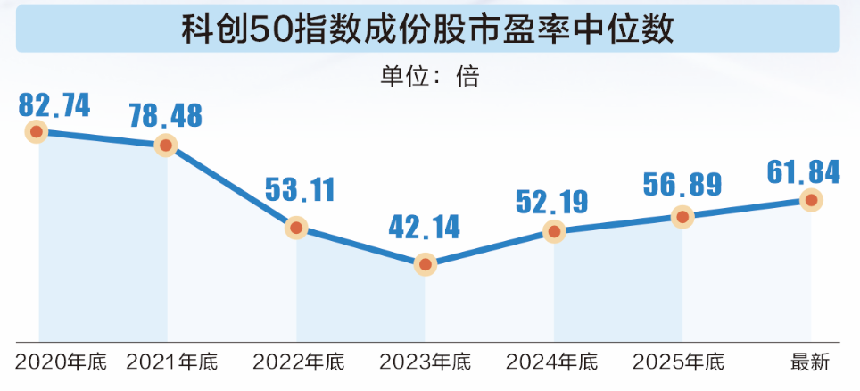 科创50指数最新市销率为7倍多,高于纳斯达克指数,后者为5倍多。不过,根据机构一致预测2026年营收计算,科创50指数前瞻市销率将降至5.8倍以下,处于相对合理区间。
