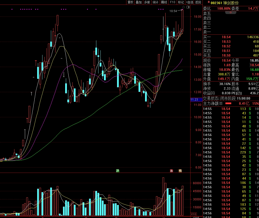 人民财讯4月15日电,商业航天概念股神剑股份4月15日涨停,股价创历史新高,全天成交金额54.6亿元。盘后数据显示,活跃游资银河证券大连黄河路证券营业部买入9382万元,卖出60万元。该营业部此前买卖商业航天概念股引发关注,其上一次现身龙虎榜为今天2月3日现身航天发展。另外,活跃游资国泰海通证券北京知春路证券营业部、国泰海通证券武汉紫阳东路证券营业部分别买入1.51亿元、6972万元神剑股份。