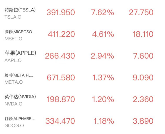 明星科技股普涨,特斯拉涨近8%,此前首席执行官埃隆・马斯克表示,公司已完成 AI5 芯片的流片,并正在推进 AI6 与 Dojo3 的研发。流片标志着芯片进入量产前的最终设计阶段。微软涨4.61%,苹果涨2.94%,Meta、英伟达和谷歌涨超1%。