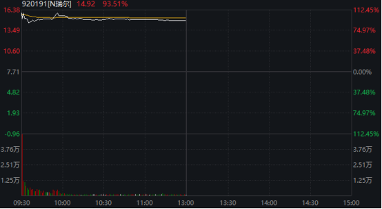 A股市场今天有一只新股上市,为瑞尔竞达,盘中涨幅一度超过110%。