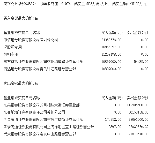 【游资动向】英维克一字跌停,东吴证券苏州相城大道证券营业部卖出1.13亿元