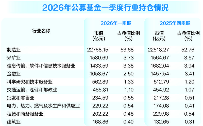 人民财讯4月23日电,2026年公募基金一季报披露完毕,基金的行业持仓情况也浮出水面,制造业成为最大赢家。