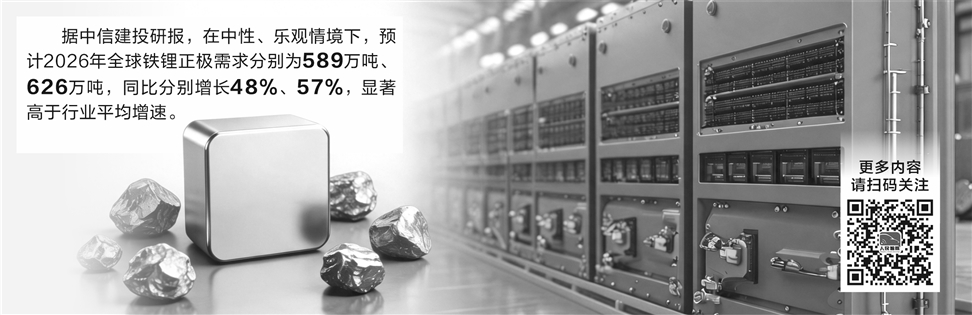 据中信建投研报,在中性、乐观情境下,预计2026年全球铁锂正极需求分别为589万吨、626万吨,同比分别增长48%、57%,显著高于行业平均增速。