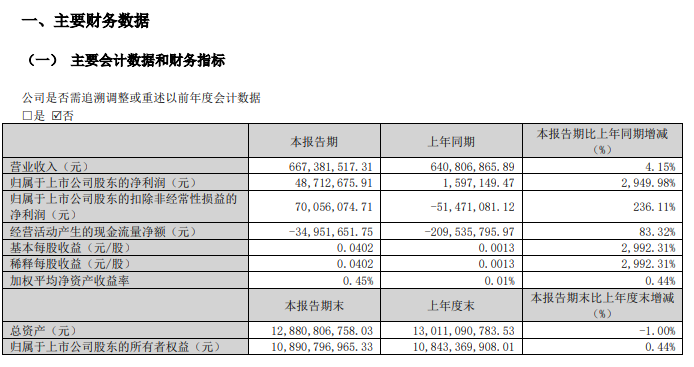启明星辰作为网络安全产业的头部企业,2026年一季度也迎来大丰收。报告期内,公司实现营业收入6.67亿元,同比增长4.15%;净利润为4871.27万元,同比增幅高达2949.98%。