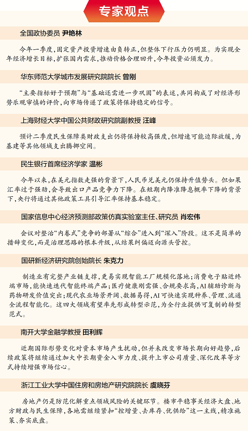 多位受访专家认为,面对一季度经济良好开局的局面,当前工作的重点是“用好用足”前期已经出台的存量政策,确保政策红利充分释放。当前经济整体处于温和回升过程,内生力量有改善但依然偏弱,接下来宏观经济政策还要保持积极,维护好经济持续回升的势头。